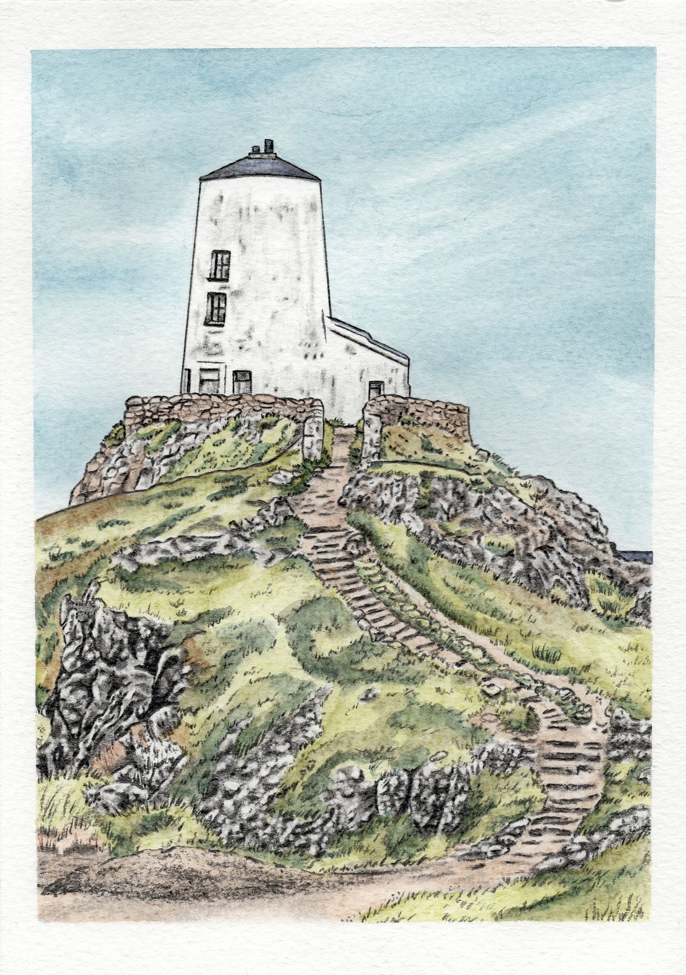 Twr Mawr Lighthouse, Anglesey: Graphitint pencils and pencils.